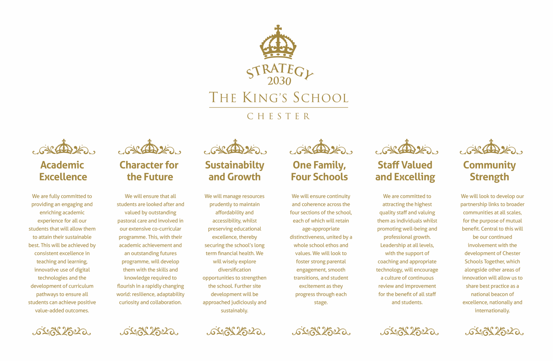 In caring about excellence and each other, and in promoting enjoyment and happiness through fulfilment, the members of the King’s community strive to: