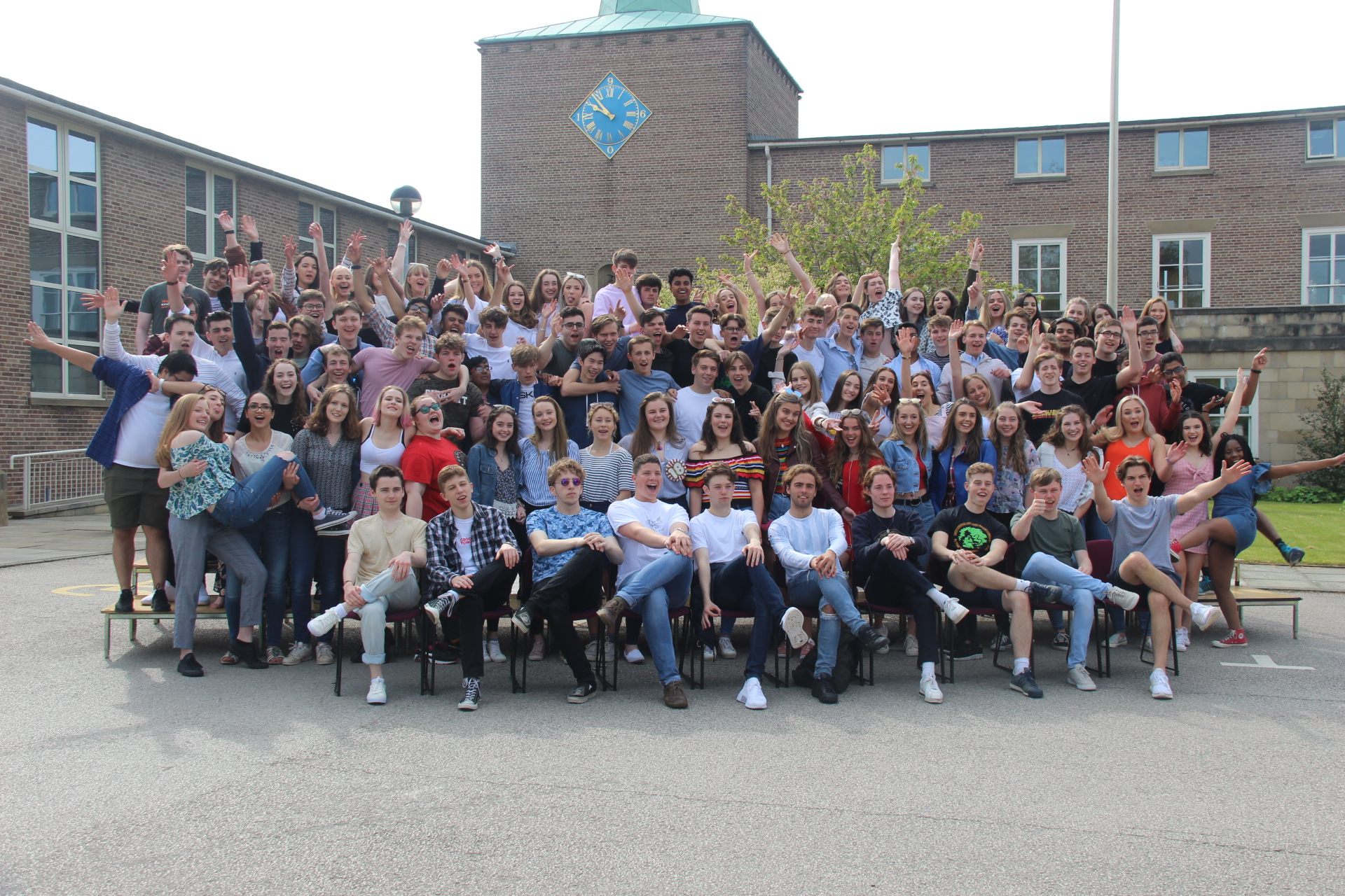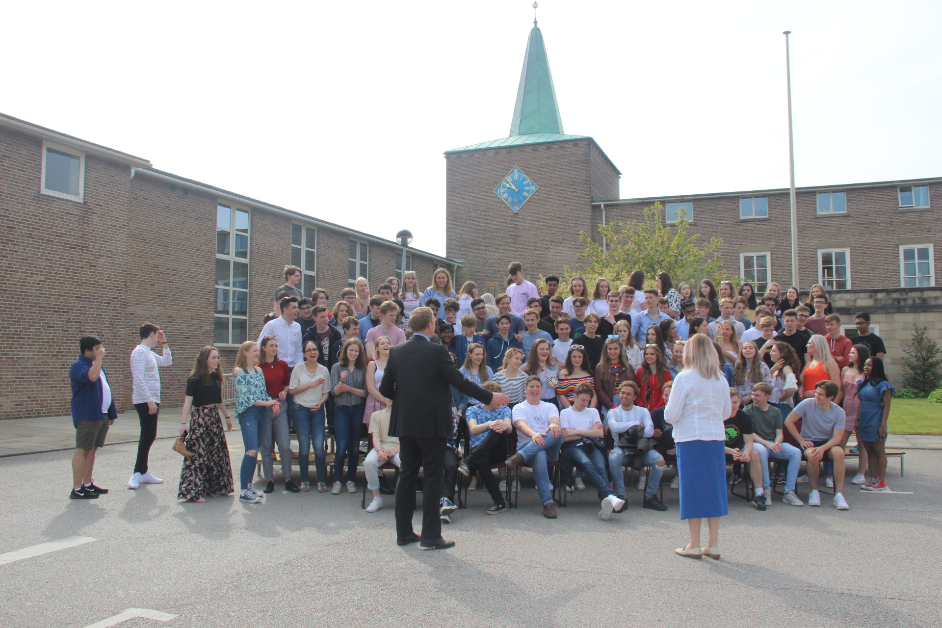 The students then gathered for photographs in front of the tower, before an ice cream in the sun.