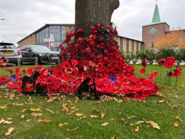 Pictured here are members of the wreath-laying party, the Head of School Team, together with CCF cadets and leaders. This year, the display of poppies, created by Junior School pupils a few years ago, grew to include purple poppies that commemorate animals who served and died in wartime.