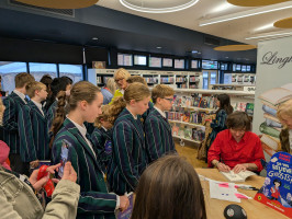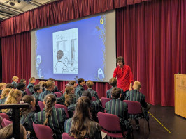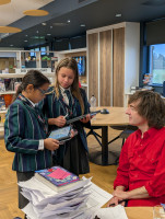 Speaking afterwards, Robins praised the creativity and curiosity of the pupils and chatted with several of them at a book signing in The Wickson Library, before being interviewed by two roving reporters Serena and Giovanna from the school newspaper The Coronet.